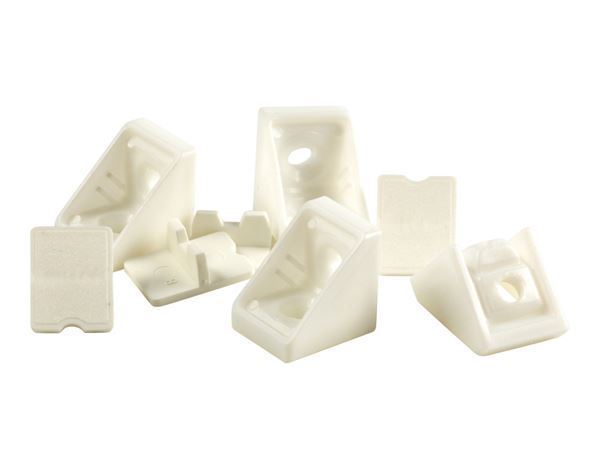 Samleklods - Møbelbeslag i hvid.  * Mål: 20 x 20 x 18 mm