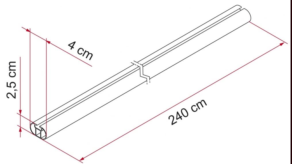 For markiser fra 450 cm. skal der anvendes 4 stk. skinner.