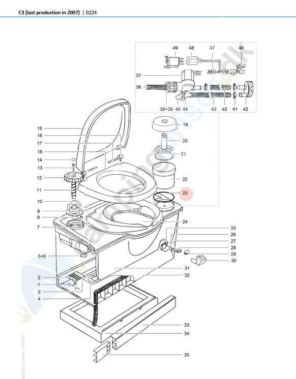 Se 2. tegning Thetford toilet C3 - del 23 - mærket med rød