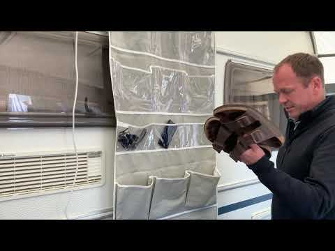 Den er fremstillet i belagt polyester med enkelte lommer i transparent folie, så indholdet er synligt.