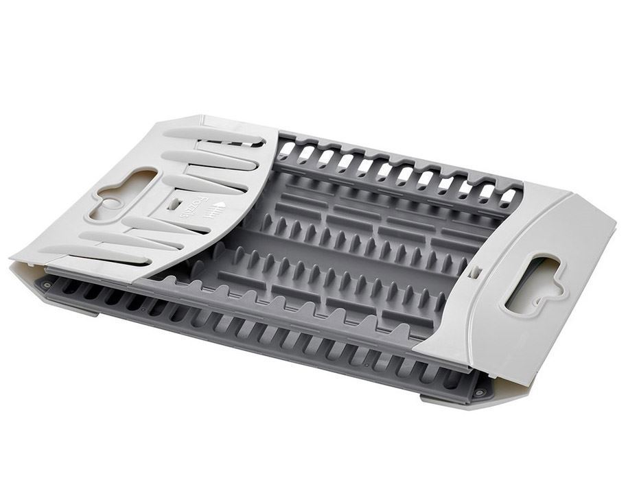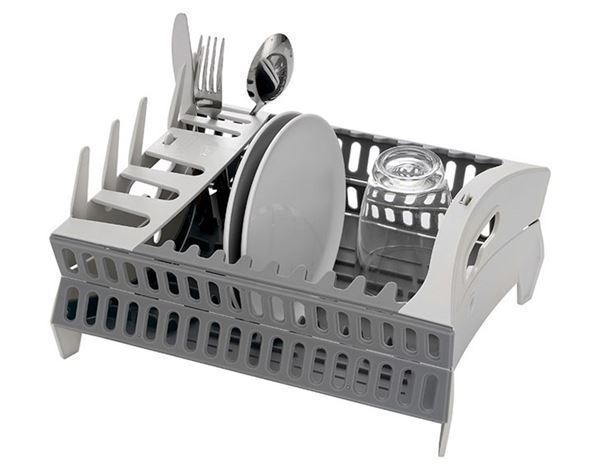 Opvaskestativet kan let klappes sammen, så det bliver helt fladt. Det fylder dermed minimalt, når det opbevares.