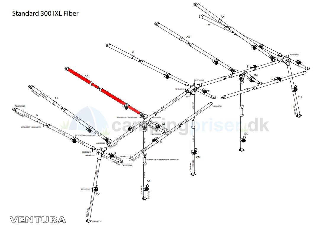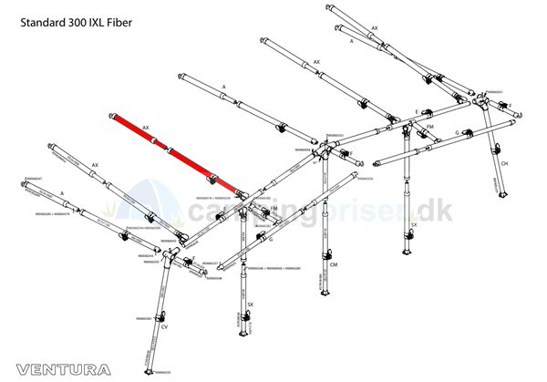 Isabella MAX-stang tagstang til Ventura standard 300 cm dybde i IXL fiber IXL med fixus-beslag
