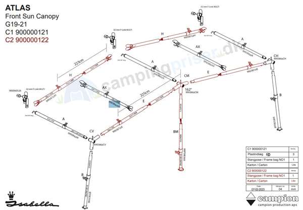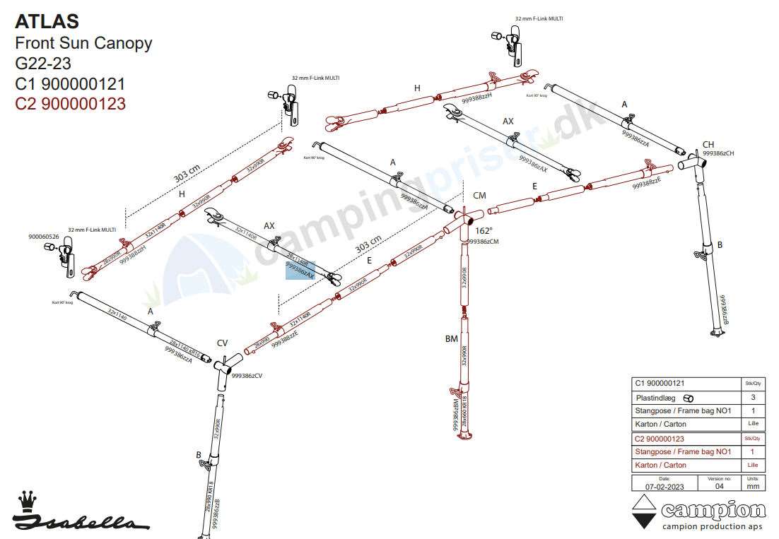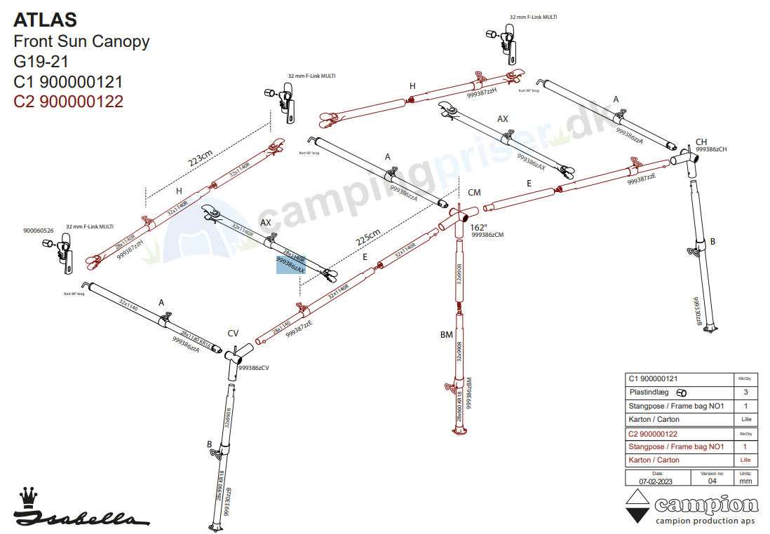 Isabella Overligger Mega AX-stang Atlas solsejl G19-23
