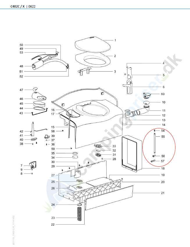 Se tegning del 54 - 55 - 56 - 57 - mærket med rød ring