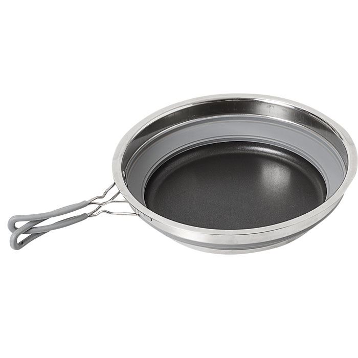 Foldbar pande, som kan anvendes både på gas- og elektriske komfurer.
