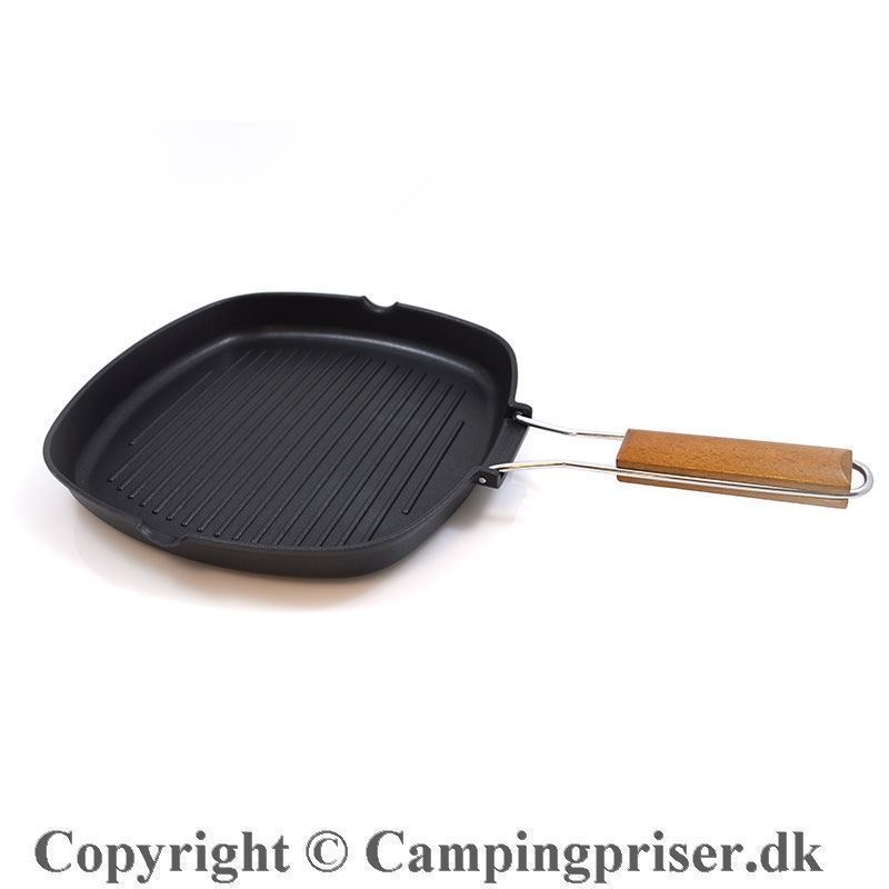 Grillpanden har foldbart håndtag.
