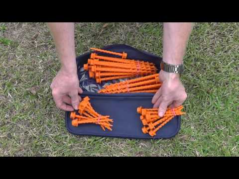 Pløkkernes gevind gør dem ideelle til blødt og sandet underlag, men de kan også anvendes i et hårdt og stenet underlag, takket være et fleksibelt krogsystem - pløkken skrues så langt i jorden som muligt, krogen tilpasses i højden, og du har en solid fastspænding.