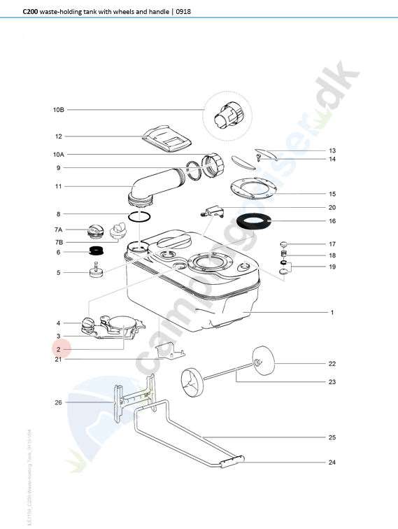 Se 2. tegning Thetford toilet C200 - del 2 - mærket med rød