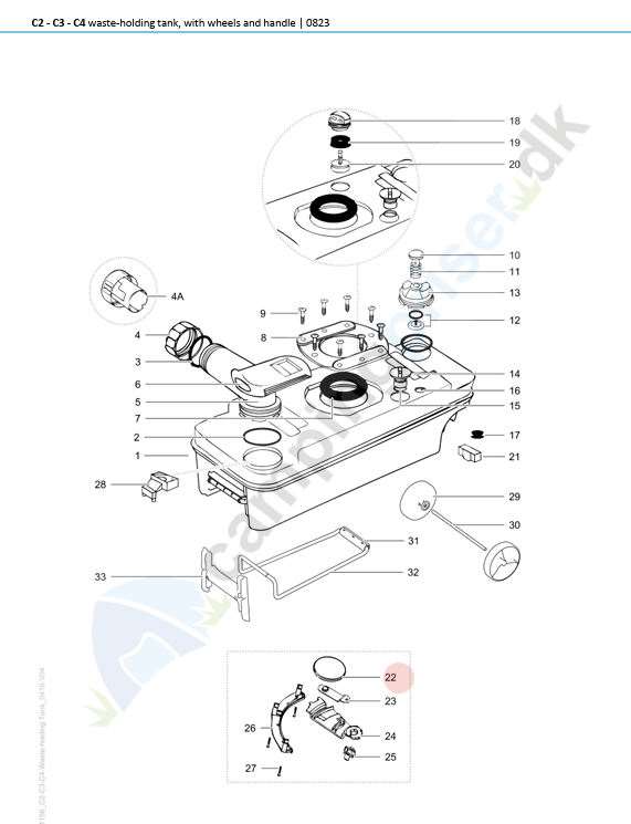 Se 1. tegning Thetford toilet C2 - C3 - C4 - del 22 - mærket med rød