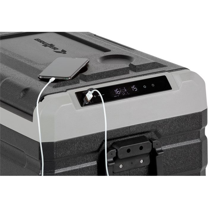 * Køle/fryseboks med to-delt rum (25 ltr. + 10 ltr.) med individuel temperaturstyring, som kan styres via app på smartphone. * * * LCD-skærm med touch-funktion.