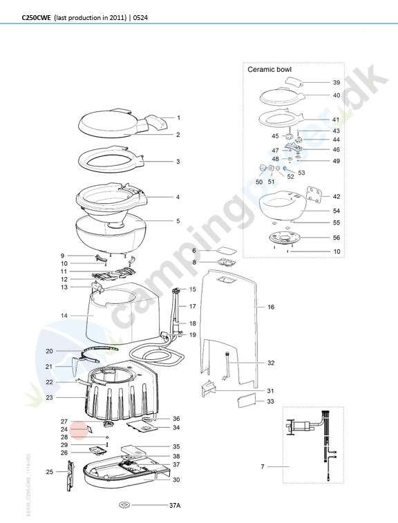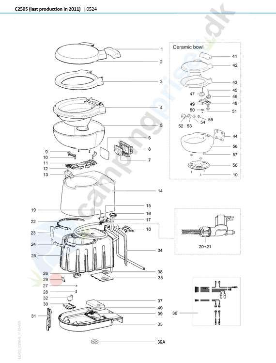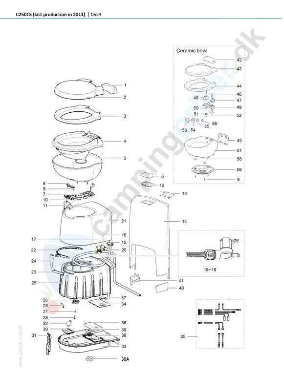 Se 2. tegning Thetford toilet C250CS - del 29 - mærket med rød