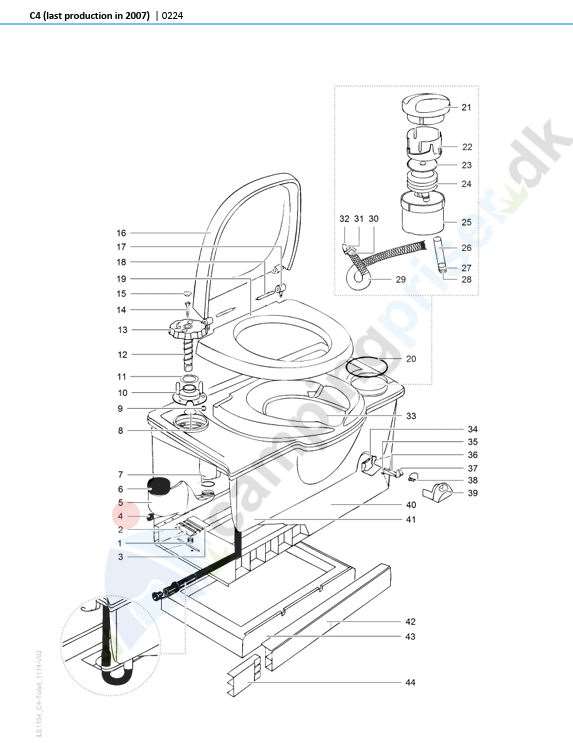 Se 2. tegning Thetford toilet C4 -  del 4 - mærket med rød