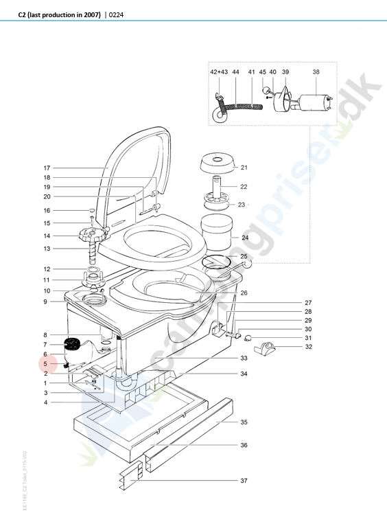 Se 1. tegning Thetford toilet C2 -  del 5 - mærket med rød