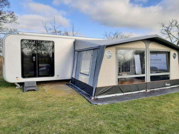 Isabella pudesæt med teltstænger og click-profiler til montering af sidestykker ind mod vognen, så teltsiden får støtte ind til vognen.