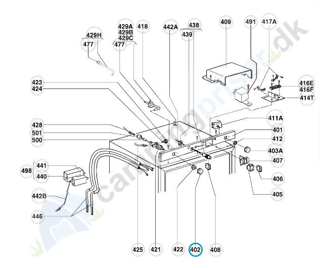 Gasreguleringsventil Dometic køleskab - knappen sidder på frontpanel  (pos. 402)