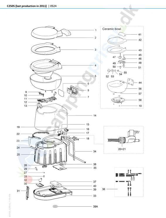 Se 2. tegning Thetford toilet C250 - del 32 - mærket med rød