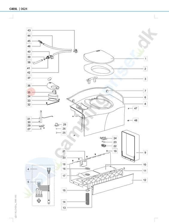 Se 3. tegning Thetford toilet C403 - del 35 - mærket med rød