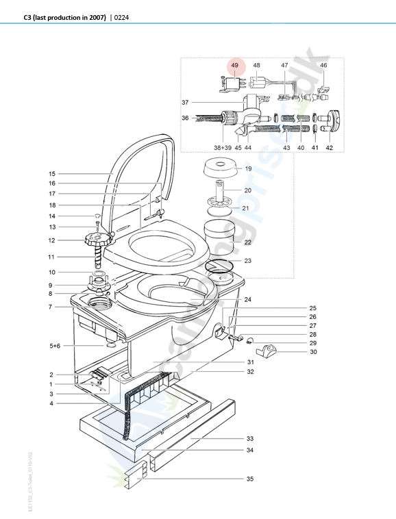 Se 1. tegning Thetford toilet C3 - del 49 - mærket med rød