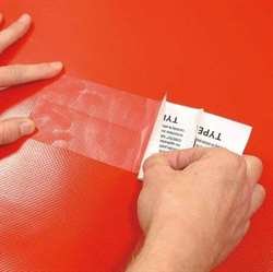6. Påsæt den klæbrige side. Samtidig med påførsel af lappen, trækkes beskyttelsespapiret af.