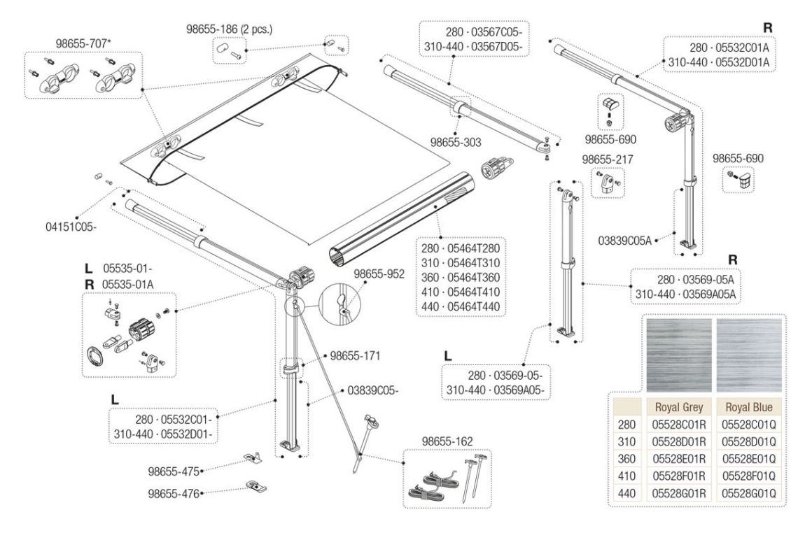 * Passer til Fiamma Caravanstore posemarkise 280 - 310 - 360 - 410 - 440 cm.