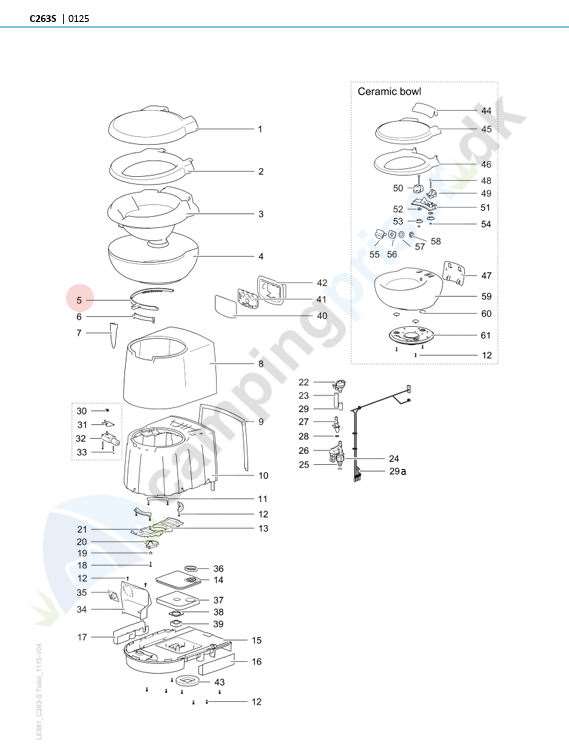 Se 2. tegning Thetford toilet C263 - del 5 - mærket med rød
