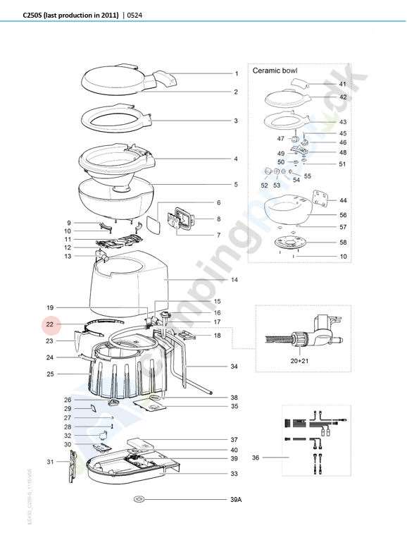 Se 1. tegning Thetford toilet C250 - del 22 - mærket med rød