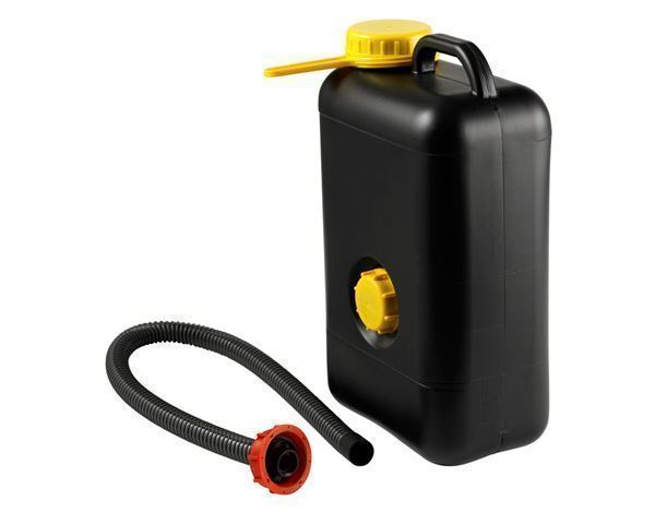 Spildevandsdunk 19 liter med tilslutningsstykke til campingvognens afløb.