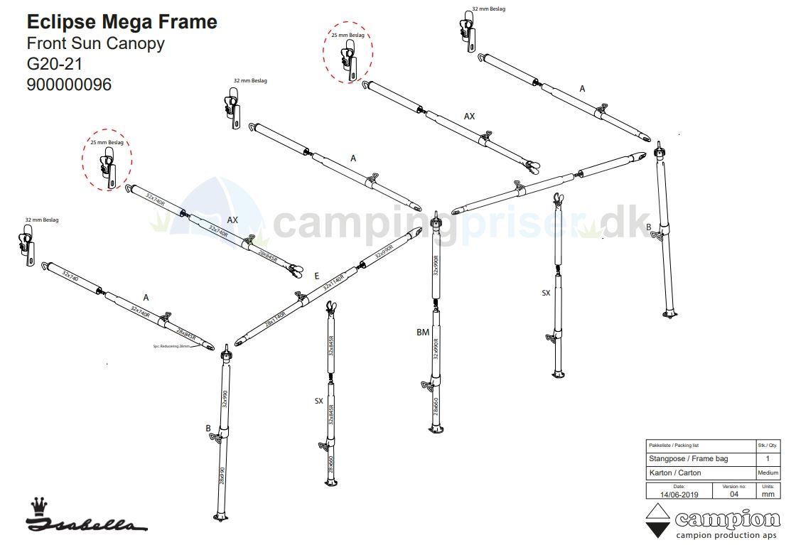 Stangsæt G20-21 Eclipse MEGA Frontsolsejl stel