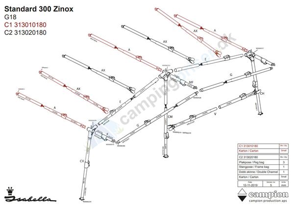 Isabella G18 Zinox stel standard 300 - passer til a-målene 950, 962, 975 og 989