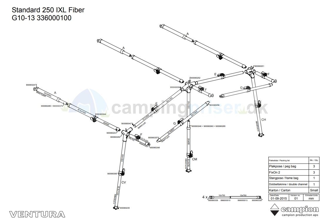 Isabella komplet stangsæt G10-13 til Ventura standard 250 cm dybde i IXL fiber med Fixus beslag