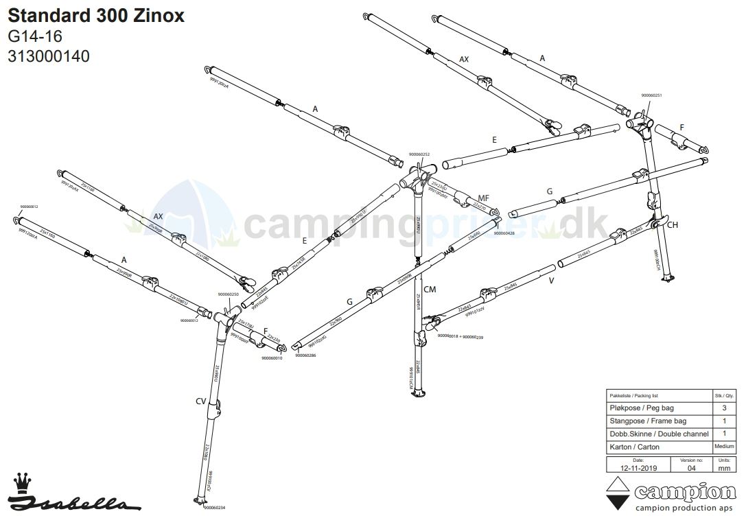 Isabella G14-16 Zinox stel standard 300 - passer til a-målene 850, 875, 900, 925 og 940