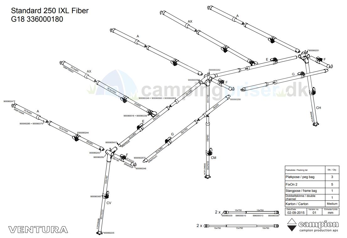 Isabella komplet Stangsæt til  Ventura fortelt dybde 250 Standard i Fiber med Fixus beslag