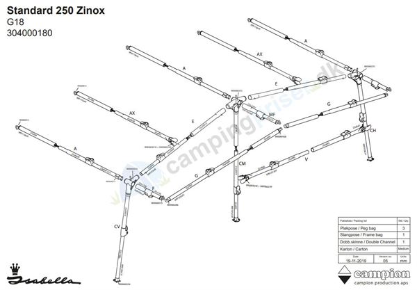 Isabella G18 Zinox stel standard 250 - passer til a-målene 950, 962, 975 og 989