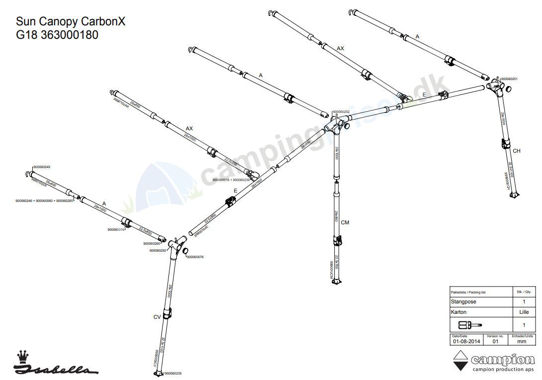 Isabella har udviklet det unikke CarbonX-stativ i samarbejde med Exel. Det er et kulfiber-forstærket glasfiberstativ, som er specielt velegnet til rejsecamping, men også til standcamping, da det er let og fuldstændig korrosionsfrit.