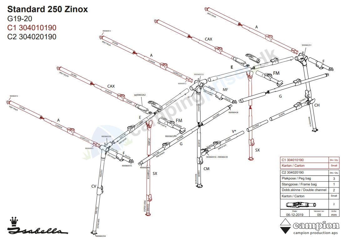 Isabella G19-20 Zinox stel standard 250 - passer til a-målene 1000, 1025, 1050 og 1075