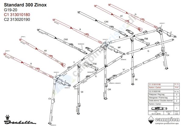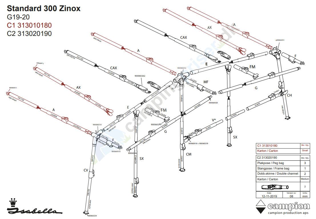 Isabella G19-20 Zinox stel standard 300 - passer til a-målene 1000, 1015, 1025, 1050 og 1075