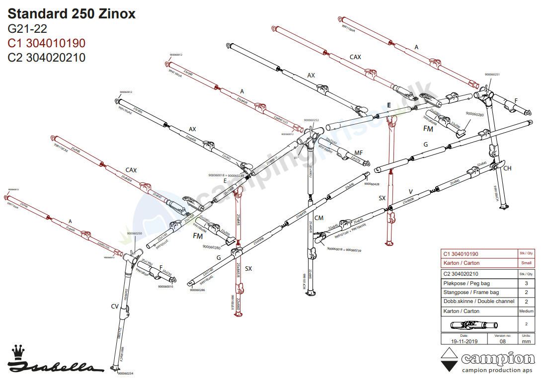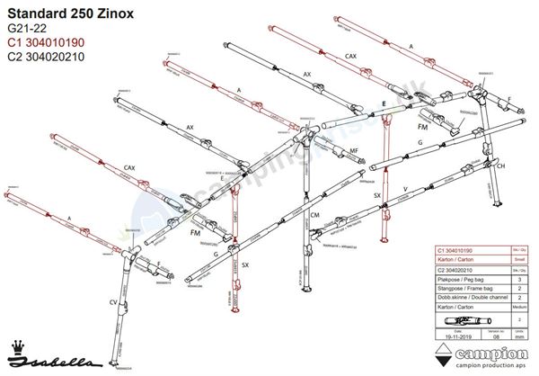 Isabella G21-22 Zinox stel standard 250 - passer til a-målene 1100, 1125, 1150 og 1175