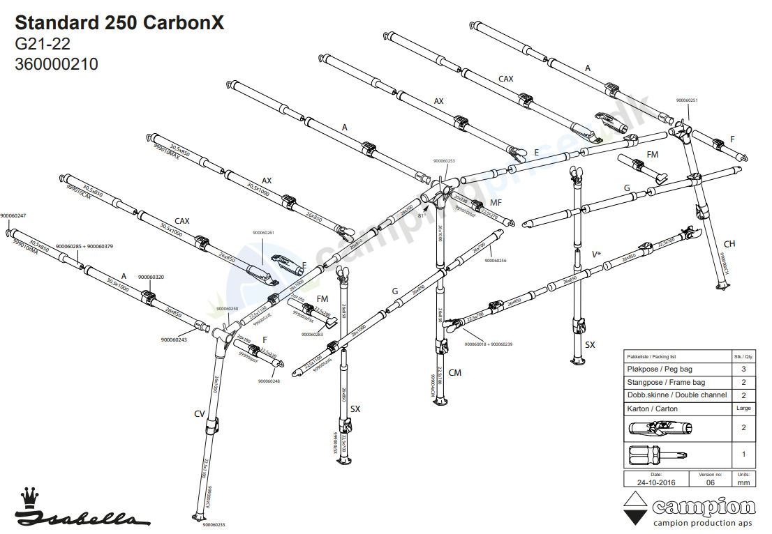 CarbonX™ fiberstel Isabella har udviklet det unikke CarbonX-stativ i samarbejde med Exel. Det er et kulfiber-forstærket glasfiberstativ, som er specielt velegnet til rejsecamping, men også til standcamping, da det er let og fuldstændig korrosionsfrit. Inkl. Stangpose og pløkker. 1.Langsgående glas- og kulfibre 2.Krydsvikling 3.Langsgående glasfibre 4.Krydsvikling med uret 5.Krydsvikling mod uret 6.Lak