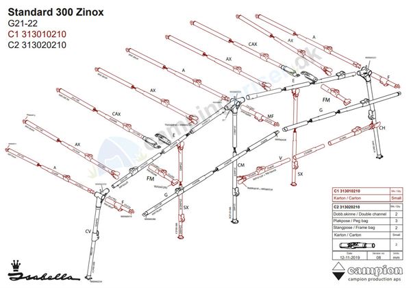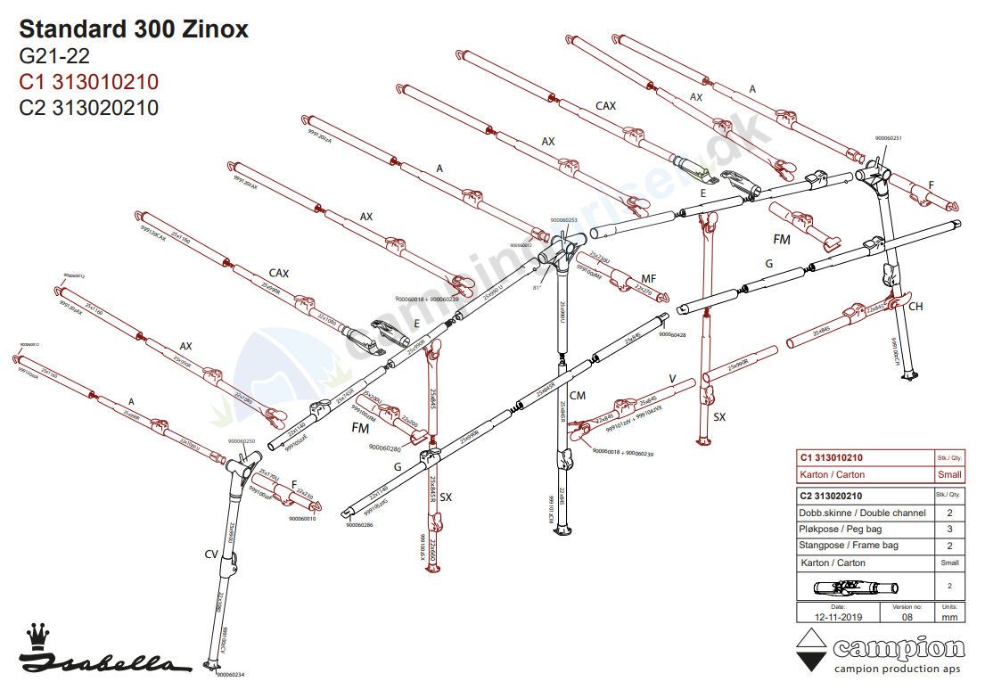 Isabella G21-22 Zinox stel standard 300 - passer til a-målene 1100, 1125, 1150 og 1175
