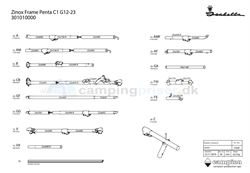 Del af Forteltstænger til Penta G12 -23 i Zinox stel med T-rex beslag