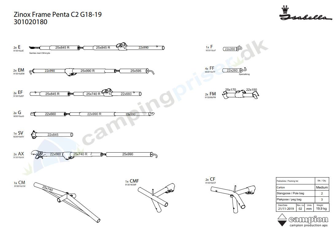 Stangsæt Penta C2 G18-19 Zinox Stel Isabella