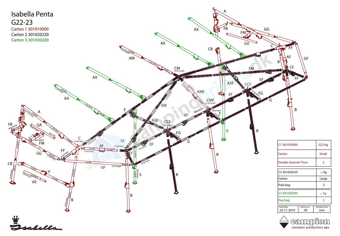 For komplet sæt til G22-23 tilkøbes Carton 1 301010000 + Carton 2 301020220