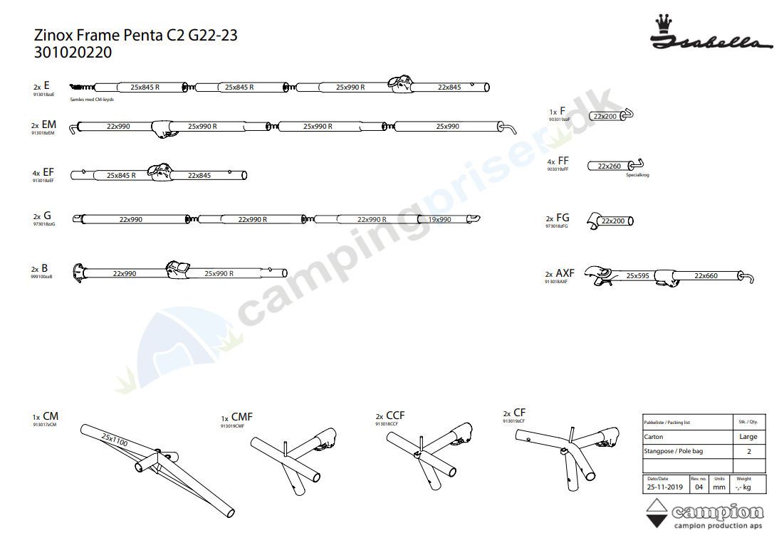 Isabella G22-23 Zinox stel til Penta - kasse C2