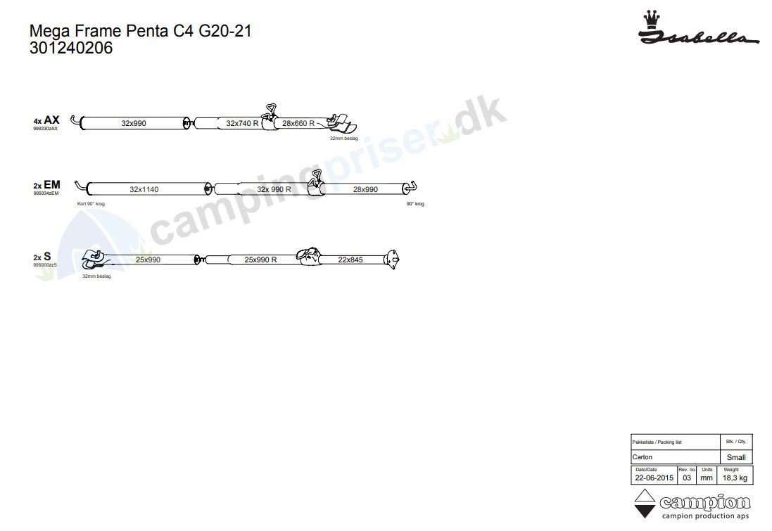 Isabella G20-21 MegaFrame stel til Penta - kasse C4