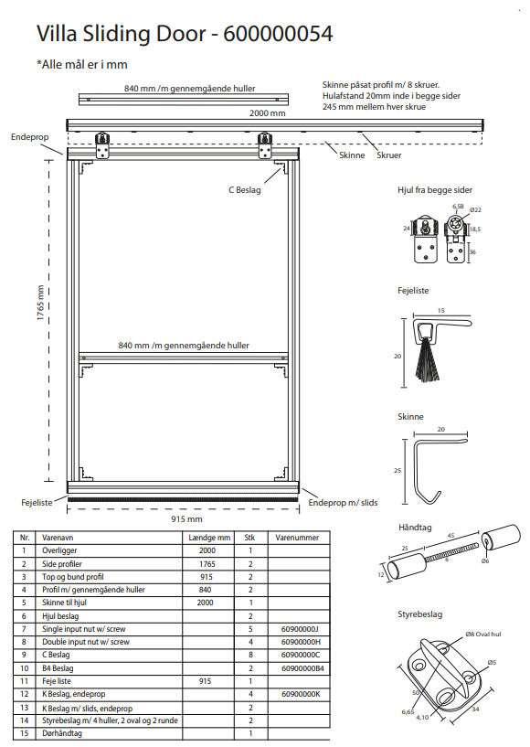 Husk at købe Dug til Villa Skyde Dør 600000065