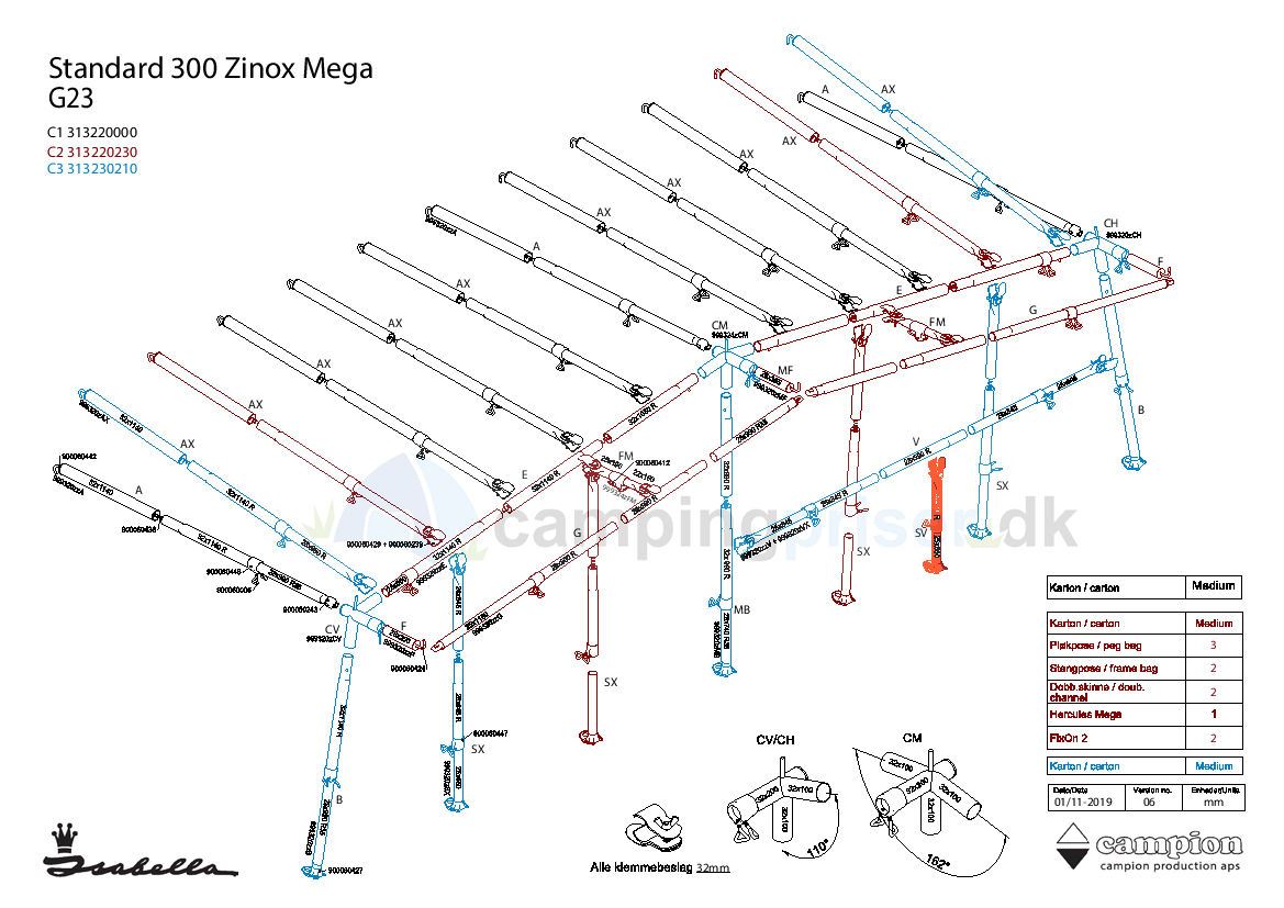 Isabella Støttestang med fod og klembeslag i Mega stel til at understøtte evt. verandastang