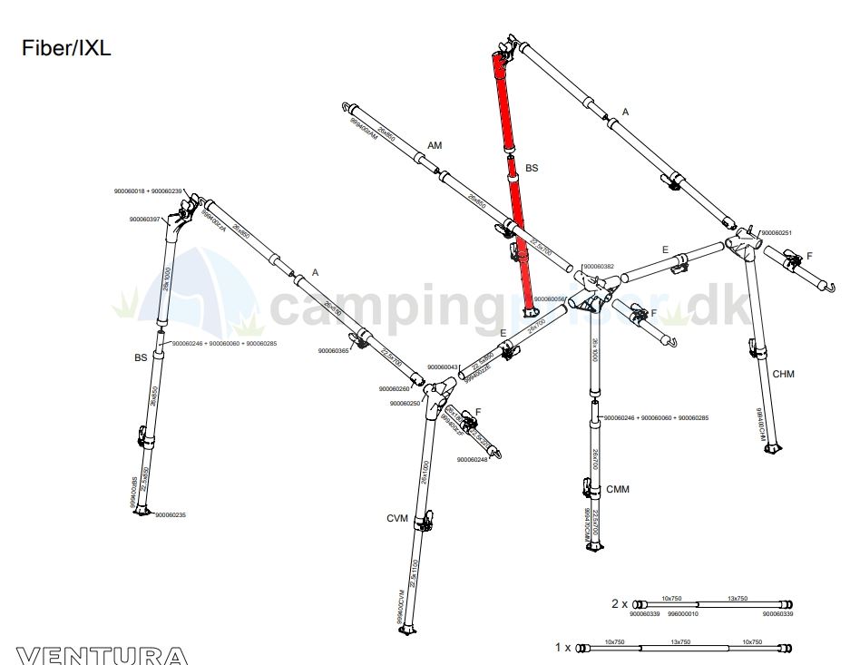 BS-stang  - Støttestang - Ventura Marlin og Cadet deltelt i Fiber -  IXL med Fixus beslag
