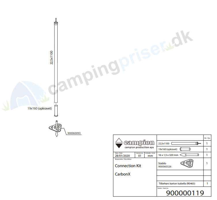 Isabella støttestang til havelåge i CarbonX stel til læsejl.