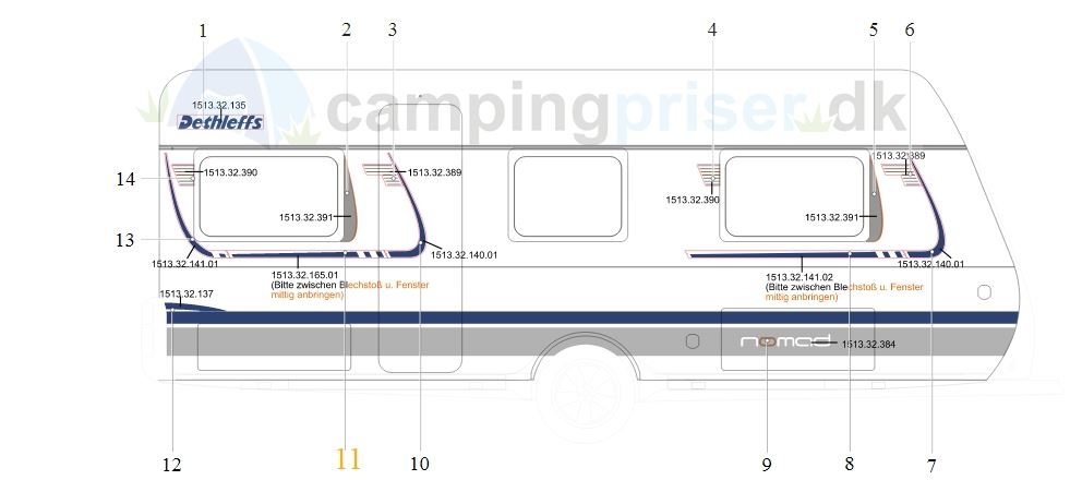 Klistermærke logo - streamer til Dethleffs - under vindue