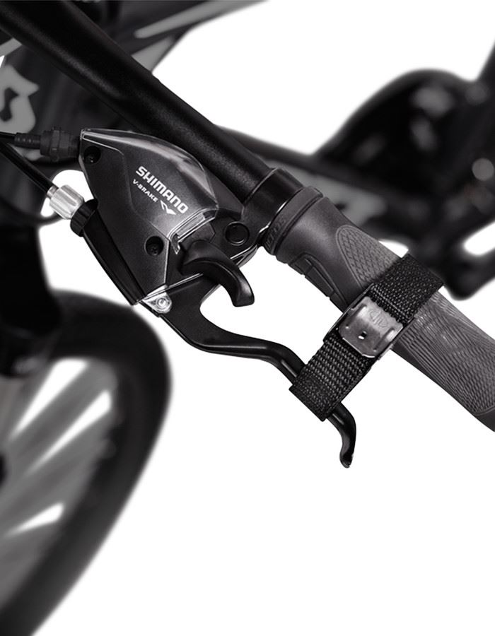 Reducerer sidelæns bevægelse af cyklen, når den er monteret på cykelholderen, ved at fastgøre håndbremsegrebet.